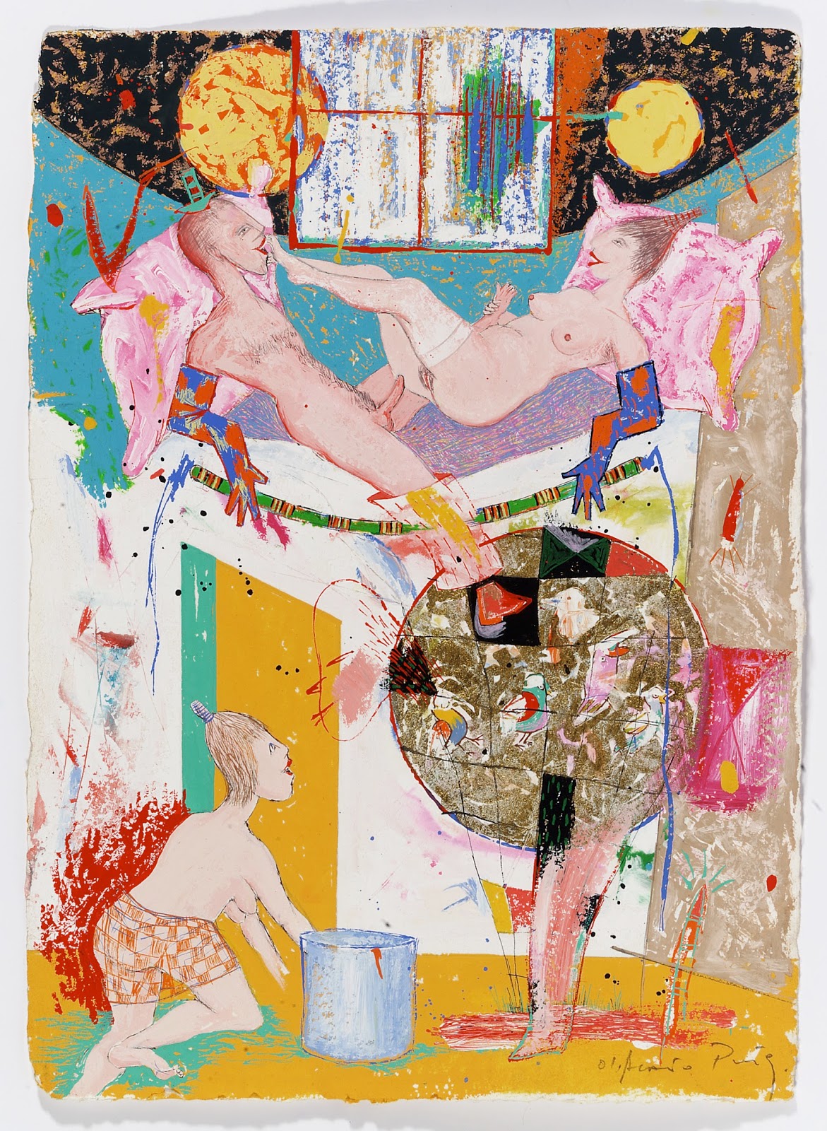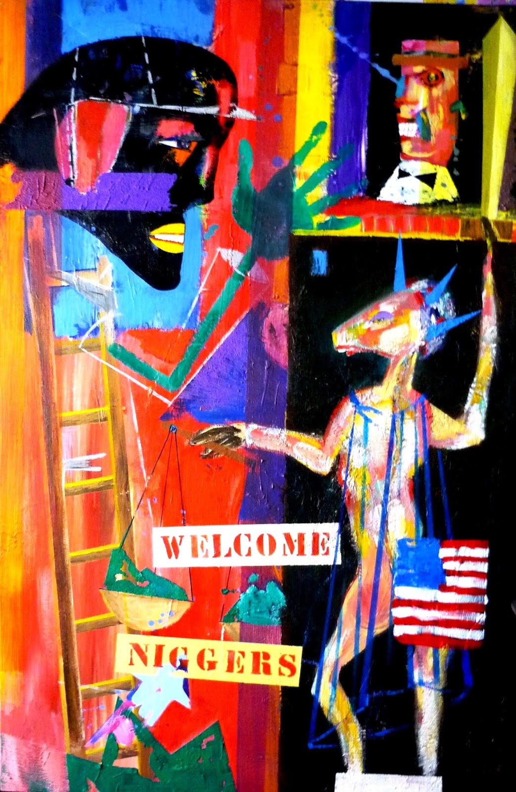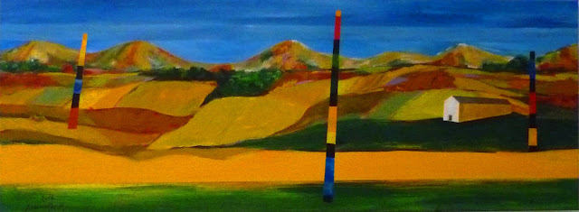 en una indiscriminada mezcla de pintura de cuarto de estar (¡aquellos paisajes